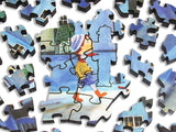Designed by Matt Lyon, this puzzle contains many festive whimsies, a straight edge, and a whole lot of holiday spirit. Get cozy next to the fire with your hot chocolate and enjoy this jolly good time of a puzzle. This puzzle has a straight edge.