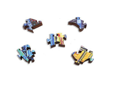 Like all our puzzles, made with 1/4" thick wood and the pieces are laser-cut.