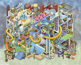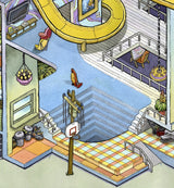 This 383 piece wooden jigsaw puzzle is a highly-detailed Escher-esque "dream house" by artist Scott Teplin complete with billiards, bidet, basketball, as well as pet octopi and pit of despair!