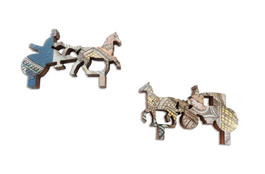 Like all our puzzles, made 1/4" wood and the pieces are laser-cut.
