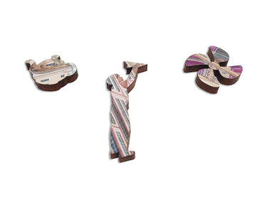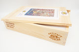 Like all our puzzles, made with 1/4" thick wood and the pieces are laser-cut. Packaged in our standard pine wood box. Made in USA.