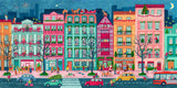 This is a 600 piece merry holiday puzzle that celebrates Christmas in the city with Victorian buildings, friendly neighbors, and bright cheerful colors.