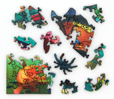 The original artwork by Washington artist Lance Snider was created in black-and-white with an almost claymation look and 2.5D perspective. We commissioned Elisa Lara Campos to colorize the image for a fun puzzling experience.