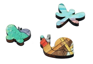 Like all our puzzles, laser-cut from 1/4" thick wood.