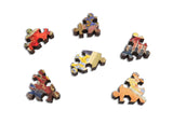 The design by Chandler Millwood primarily consists of pentagonal pieces with non-unique connectors, which makes this a challenge to complete despite its straight edge and vibrant, detailed art. The puzzle design includes a smattering of themed whimsies, but not too many to make it easy!
