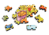 A bit harder than average for its piece count despite a straight edge, classic puzzle piece shapes with some non-unique knob connectors, and a few fun cartoon whimsies. Puzzle design by Jef Bambas.