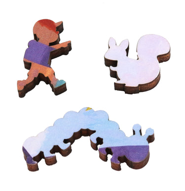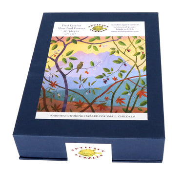 This delightful 217 piece wooden jigsaw puzzle features an uplifting landscape painting by Seattle artist Fred Lisaius.