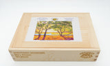 Packaged in a wood box with sliding lid, small picture of the image on top, and engraved side label.