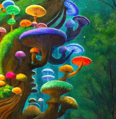 This is a challenging 286 piece wooden jigsaw puzzle of 'Mushroom Glow' by Tomasz Pietrzyk.