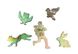This lovely 207 piece wooden jigsaw puzzle has cute animals nestled into a sweet landscape, by Christine Rotolo.