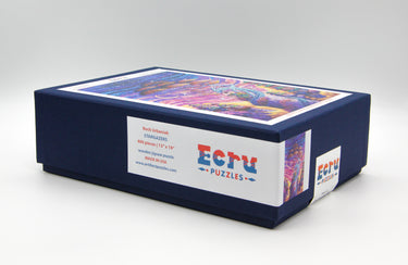 This puzzle is a bit harder than average with our cool nestled spiral pieces, just a few themed whimsies, and a whimsical edge (partly irregular edge). Puzzle design by David Figueiras.