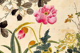 We will tell you the image is a 19th century Chinese painting of flowers with some visible weathering (as seen in the partial photo).