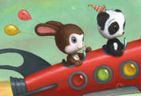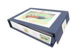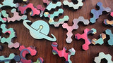 This is a 116 piece wooden jigsaw puzzle of a whimsical painting titled "In Dreams", by Geoffrey Gersten. This puzzle has a unique mini-hex piece design that makes putting it together fun and a little more challenging than you'd expect for such a small puzzle! (Really hard difficulty.) NOTE: The irregular edge is not shown in the image on the box! Like all our puzzles, the pieces are laser-cut from 1/4" thick wood. Packed in a small box with magnetic clasp. Made in USA.