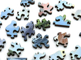 The puzzle design by Tara Flannery has themed whimsies and multi-piece whimsies watching out for you, and curvy irregular piece shapes with reverse mushroom curl connectors. The puzzle is average difficulty.