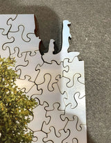 This is a 483 piece wooden jigsaw puzzle of the painting Sentinels by Paul Bond.