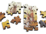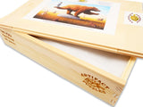 Like all our puzzles, laser-cut from 1/4" thick wood. Packaged in our standard unfinished pine wood box. Made in USA.