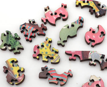 This wooden jigsaw puzzle has 230 pieces of the mischievously-titled painting Coffee And Snacks by contemporary British painter Emily C. Woodard.