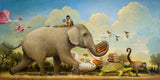 This is a 513 piece wooden jigsaw puzzle of Kevin Sloan's painting Migration of Knowledge.