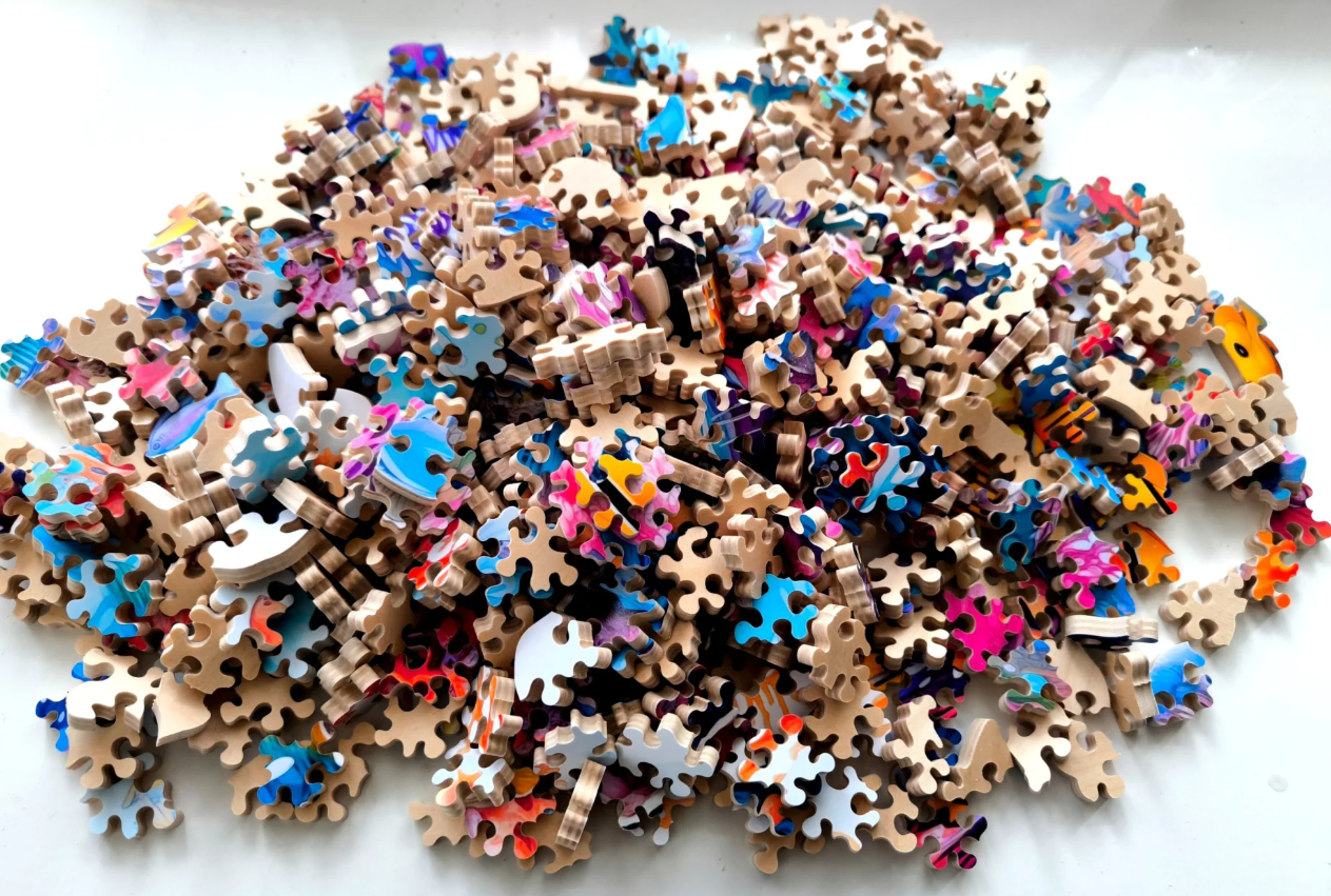 Each puzzle is unique, and so the exact piece count may vary slightly between 570–600 pieces.