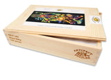 Like all our puzzles, laser-cut from 1/4" thick wood. Packaged in our standard unfinished pine wood box. Made in USA.