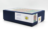 Packaged in a big blue box with a picture on top and side label.