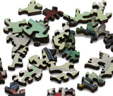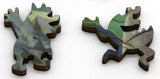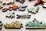 All our puzzles are laser-cut 1/4" thick wood and made in the USA.