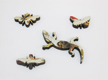 This puzzle was a very fun one-evening challenge, small enough to do on my lap desk. The fun shapes of butterflies, lizards, and bugs were very cute. “Wrong” pieces will fit together perfectly, so for awhile I thought I was losing my mind, but I figured it out and everything worked out in the end! I love the quality of this puzzle - what a nice product.