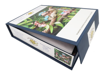 The verdant design by David Figueras has themed piece shapes and whimsies, varied connectors, and an exceptional whimsically irregular edge. NOTE: The irregular edge is not shown in the image on the box!
