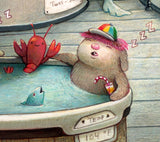 This is a 283 piece wooden jigsaw puzzle of Jacuzzi Boys by Kristian Adam. The puzzle design by Chandler Millwood has an irregular edge that follows the image, and bath and plumbing-themed whimsy pieces and connectors. NOTE: The irregular edge is not shown in the image on the box! The whole puzzle is probably as fun as drinking marshmallow cream soda through a curly straw (we can't say for sure - we haven't actually tried, we must admit). This puzzle's difficulty is about average.