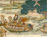 This 463 piece wooden jigsaw puzzle is a highly-detailed 18th century Chinese tapestry with beautiful, wabi-sabi, and comical details of a Dragon Boat Festival.