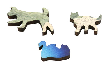 This delightful wooden jigsaw puzzle has 150 pieces.