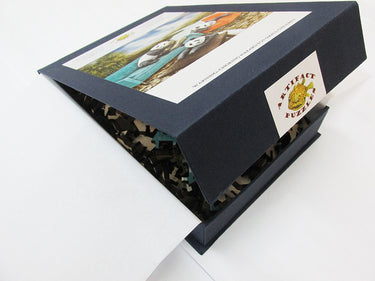 Like all our puzzles, laser-cut from 1/4" thick wood. Packaged in our blue box with magnetic clasp. Made in USA.