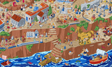 The art nods to your favorite Greek myths, plus there is everyday ancient Greek wimmelbilder activities going on in this busy place. How many mythical characters can you spot?