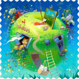 This 142 piece wooden jigsaw puzzle is a bright and cheery green apple with cats and flowers.