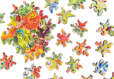 This 392 piece fine art wooden jigsaw puzzle is really hard, with complex curvy piece shapes that are all unique but look similar.
