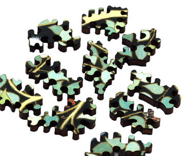 Like all our puzzles, laser-cut from 1/4" thick wood.