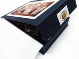 All our puzzles are made with 1/4" wood, and this puzzle is packaged in a small box with a magnetic clasp.