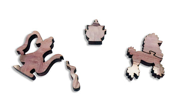 This 151 piece wooden jigsaw puzzle features a a 19th century afternoon social painted by the French painter Henri Gervex. Features fancy-lady and poofy-dog whimsy pieces designed by Tara Flannery (click on the little picture underneath the puzzle image to see example pieces).