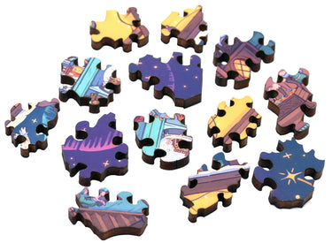 This is a highly-detailed 570 piece wooden jigsaw puzzle.