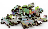 The puzzle design by Dennis Nolasco uses mostly knob connectors and has rural themed whimsies (some with a little etching for extra charm), and a straight edge, making this puzzle a bit easier than average for its size.