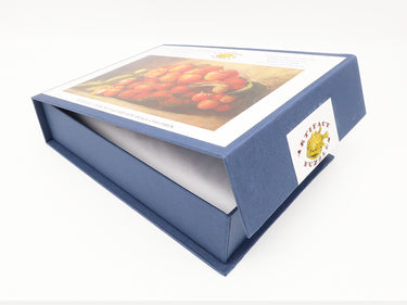 This is a 157 piece wooden jigsaw puzzle showcasing Richard La Barre Goodwin's painting, "Strawberries." Designed by Tara Flannery, this puzzles has a magnificent irregular framing edge, mushroom curl connectors, and a few themed whimsies. Both sophisticated and interesting, this puzzle is ripe with fun and really hard! NOTE: The irregular edge is not shown in the image on the box!