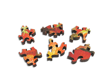 Like all our puzzles, laser-cut from 1/4" thick wood. Packaged in our small blue box with magnetic clasp. Made in USA.