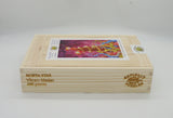 Here's an adventurous 480 piece wooden jigsaw puzzle featuring "North Star" by contemporary artist Vikram Madan. Designed by Tara Flannery, this puzzle features multiple connector types, a straight edge, and elaborate themed multi-piece whimsies. This one is tougher than average with extra-small pieces, so be ready to face some tentacle difficulties!