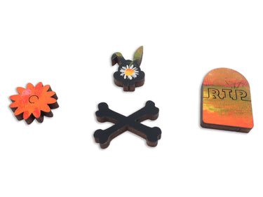 💀🌼 This is a macabre but playful 181 piece wooden jigsaw puzzle of "Stop and Smell the Daisies" by Vikram Madan.💀🌼