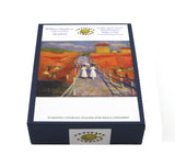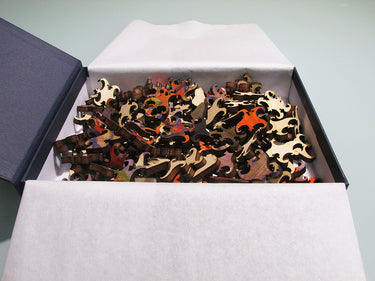 Like all our puzzles, laser-cut from 1/4" thick wood. Packaged in our small blue box with magnetic clasp. Made in USA.