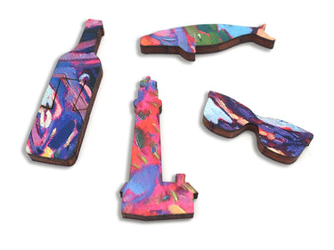 The puzzle design by Chandler Millwood has a straight edge and whimsies themed reflecting what Monterery, Pebble Beach and Carmel are famous for, not quite as good as a visit, but hope you'll enjoy puzzling it all out!