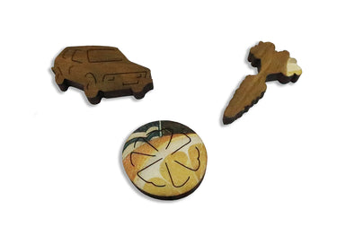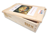 This is a 232 piece Ecru wooden jigsaw puzzle of "Lemons" by Jacob van Hulsdonck. Our Ecru puzzles line has matte images that are easier on the eyes. The still life painting includes not only lemons but also oranges and a pomegranate, and the puzzle design by Jef-Bambas is composed of mini-hex puzzle pieces and a few whimsies. This is a somewhat hard puzzle. Like all our puzzles, made of 1/4" thick laser-cut wood and made in the USA. Packaged in our standard pine wood box.