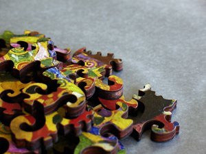 Artifact Puzzles are laser-cut from 1/4" wood.
