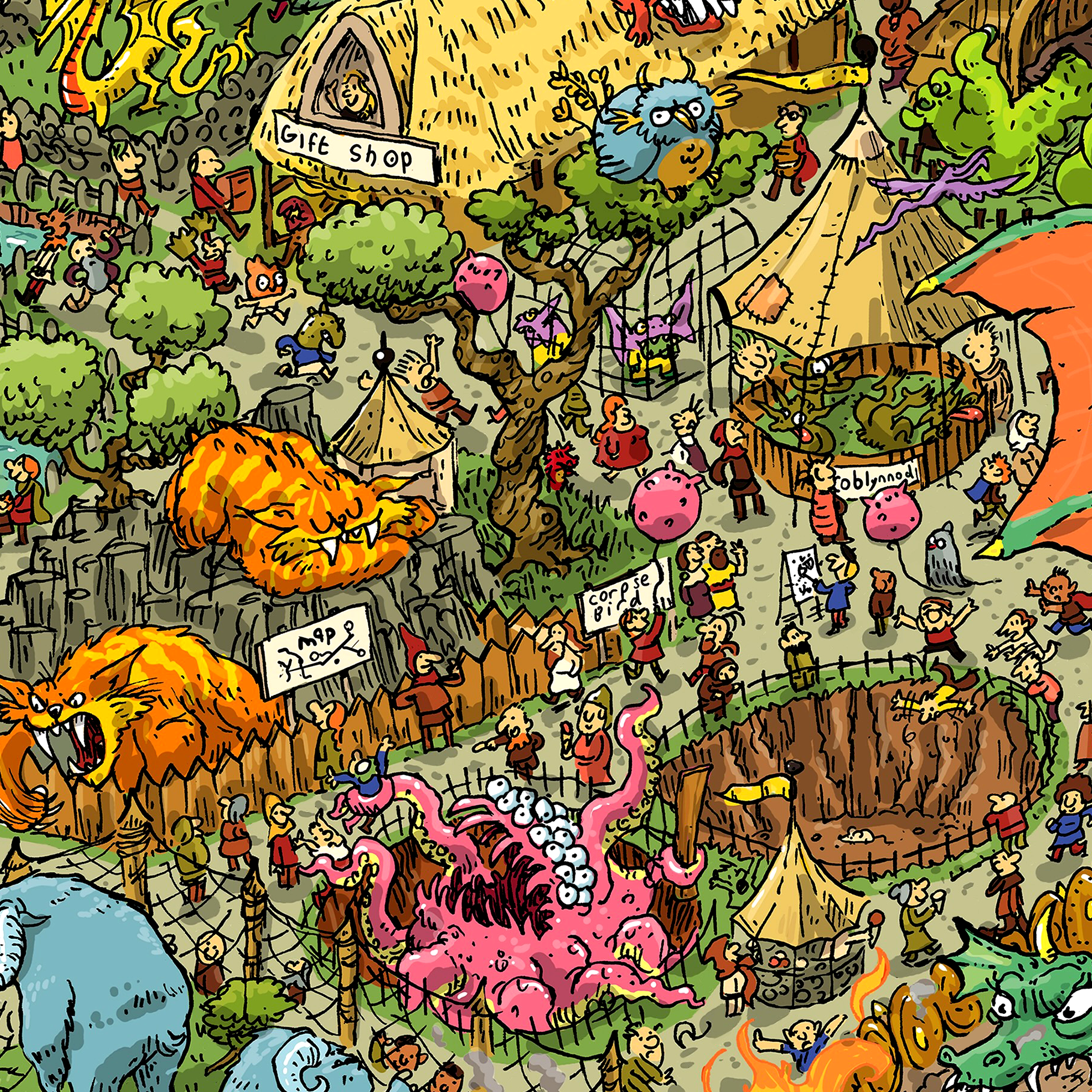 Ever wanted to observe mythical creatures up close? In this fantasy zoo, Welsh monsters and bizarre animal-creature hybrids populate a medieval zoo by Huw Aaron of Wales.