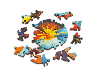 This 148 piece double-sided wooden jigsaw puzzle of Tomasz Pietrzyk's "Clocks" illustrations. Unlike most clocks, this one changes time when it turns upside-down. (Alternatively, embrace your inner horologist and take it apart, then put it back together again.) You'll find a number of intriguing whimsies as you solve this circular puzzle - you won't feel the need to clock out.